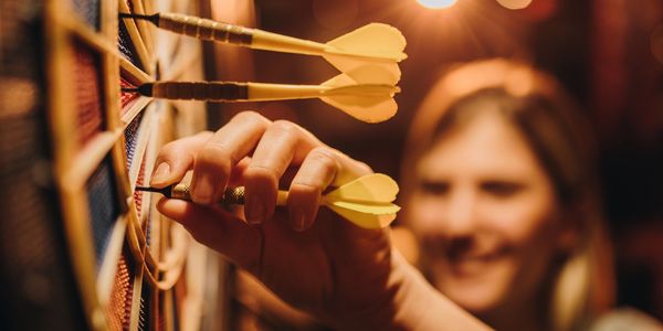 Dallas Darts offers an exceptional experience with our dart suites available for hourly rental. Nestled in the balcony of the historic Lakewood Theater, our venue combines entertainment and nostalgia. Quality professional darts and dart boards. No digital or soft-tip darts at Dallas Darts. Full bar and DoubleDave's Pizzaworks available.